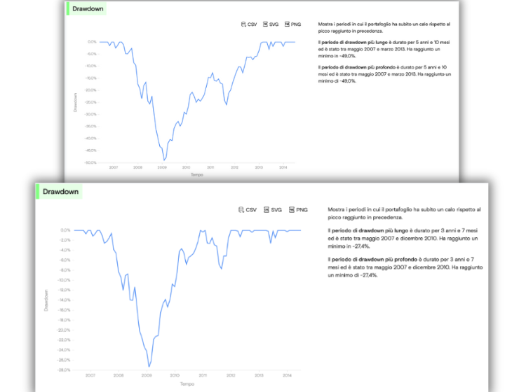 Un portafoglio ben diversificato, durante le crisi, recupera in metà tempo e subisce perdite fino al 15% in meno rispetto a una gestione casuale.
